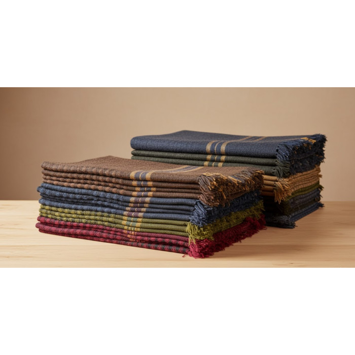 Capetele sunt finisate cu franjuri groase asortate, adăugând o notă artizanală produsului.