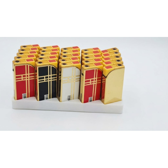 • Design Variat și Elegant: Setul include brichete în culori clasice – roșu intens, negru mat și alb perlat – toate fiind decorate cu modele geometrice aurii care oferă un aspect luxos.