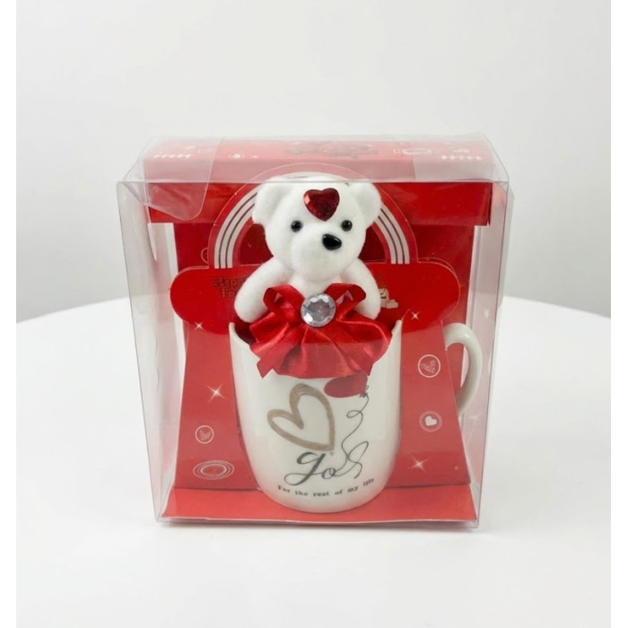 Set cadou romantic: ursuleț de pluș 20cm și cană ceramică "Love" 300ml. Este cadoul ideal pentru Valentine's Day, Dragobete, aniversări sau pur ș..