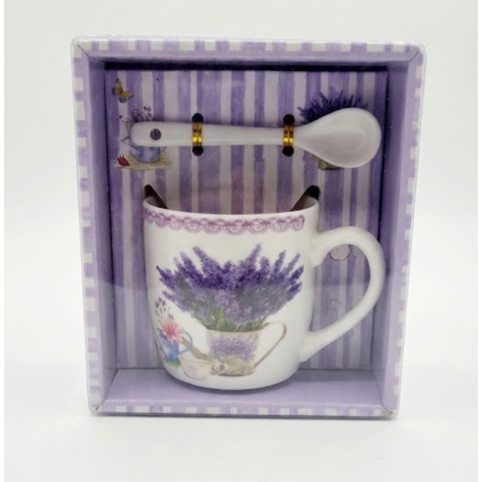 Cana cadou 280ml cu lingurita prezentata intr-o cutie din carton cu lavanda