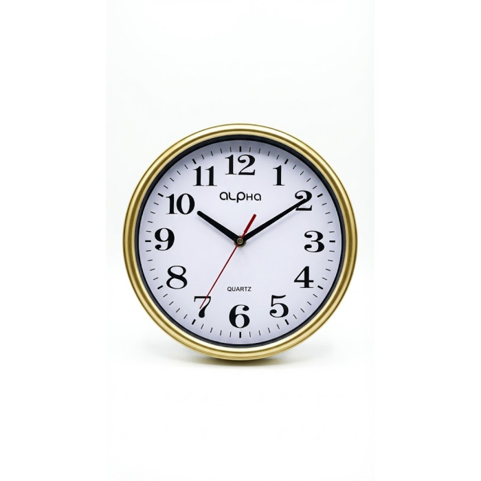 Acest ceas de perete 26cm combină utilul cu plăcutul, oferind nu doar ora exactă, ci și un element decorativ distinctiv. Rama sa finisată într-o nuanță plăcută de auriu aduce un plus de căldură și eleganță, transformând un perete simplu într-un punct de atracție.