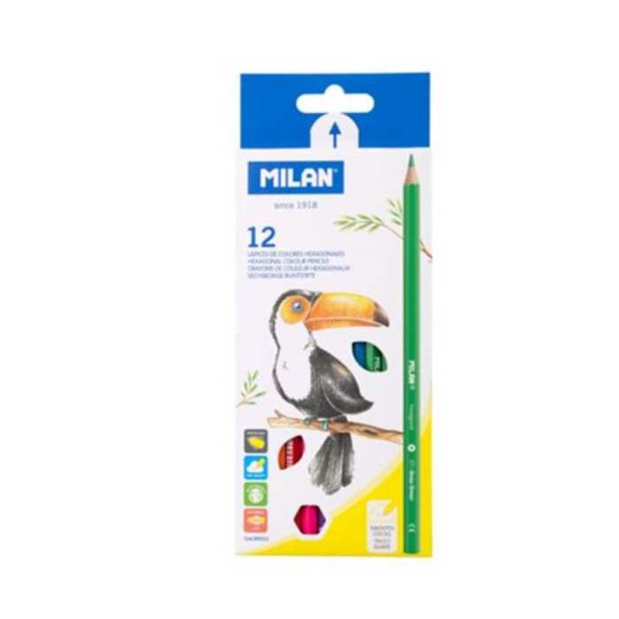 Creioane colorate hexagonale Milan cu 12 nuante..