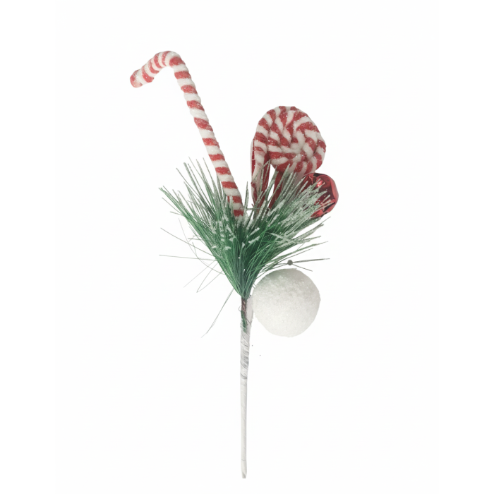 Acest accesoriu decorativ compact este piesa ideală pentru a adăuga instantaneu un accent festiv și elegant oricărui aranjament de Sărbători. Designul său combină elementele clasice ale Crăciunului într-o singură crenguță versatilă: acadele vesele, clinchet de zurgalai, fundita rosie cu alb si un glob alb cu zapada.