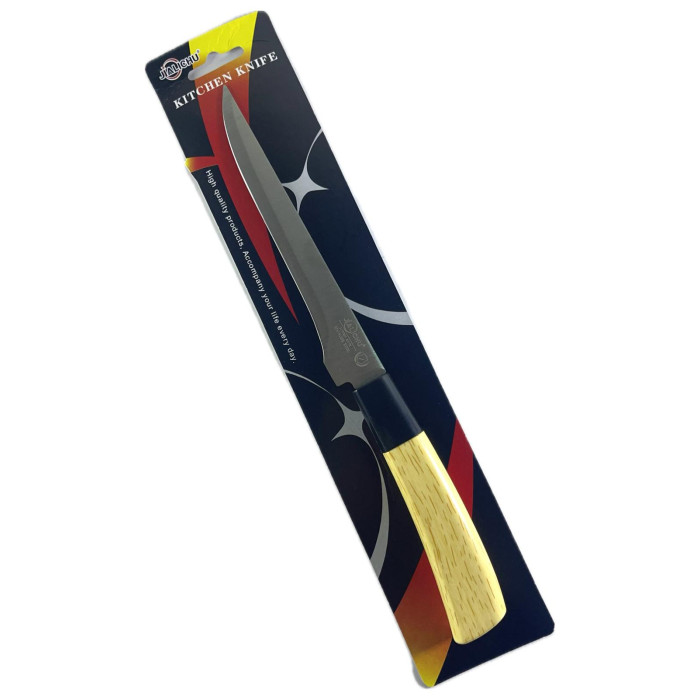 Cutit profesional din inox cu maner ergonomic confortabil si protectie alunecare cu lumgimea de 25 cm, lungimea lamei fiind de 15 cm si latime de 2-3cm. Cutitul profesional este potrivit pentru legume, fructe, carne, peste.