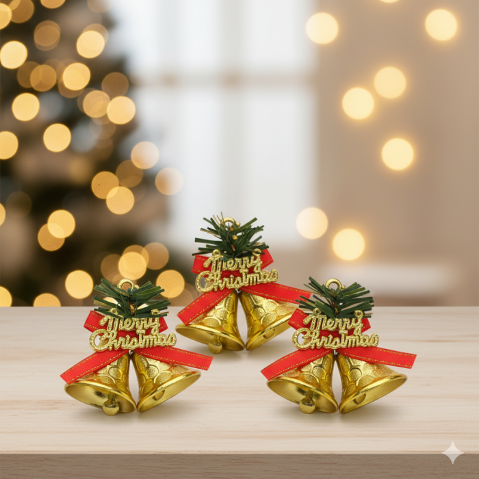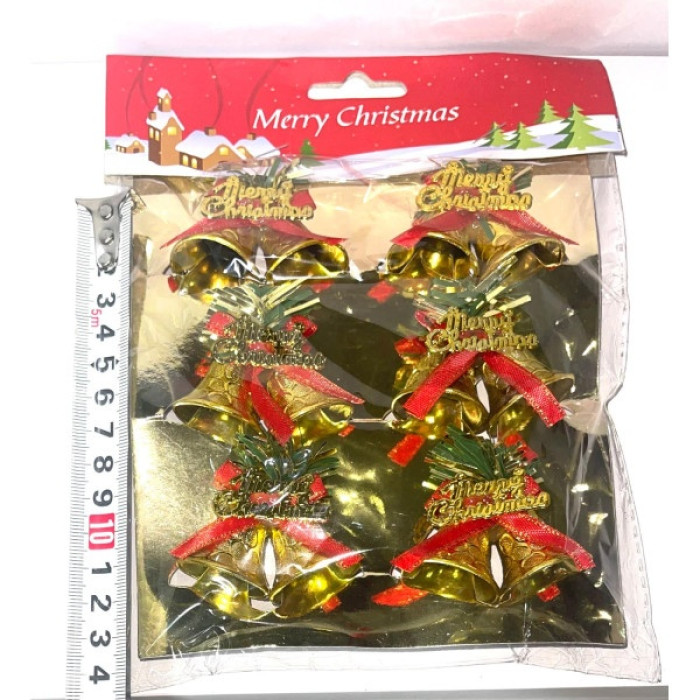 "Aceste clopoței aurii de Crăciun aduc magia sărbătorilor direct în casa ta. Fiecare clopoțel strălucitor este împodobit cu o fundă roșie elegantă și un mic aranjament verde, completat de urarea festivă "Merry Christmas". Sunt perfecte pentru a decora bradul, a adăuga o notă festivă ghirlandelor sau a crea aranjamente unice de sezon. Cu un sunet cristalin și un aspect clasic, aceste clopoțele vor încânta pe oricine și vor amplifica atmosfera de sărbătoare."