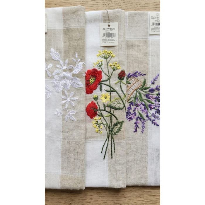 Fata de masa rustica 150x220cm imbină textura autentica a inului cu broderie florală premium potrivită pentru majoritatea meselor de dining sau d..