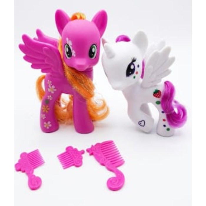 Set ponei de jucărie cu aripi și accesorii – 2 figurine colorate cu piepteni incluși este perfect pentru fetițele care adoră poveștile magice și animă..