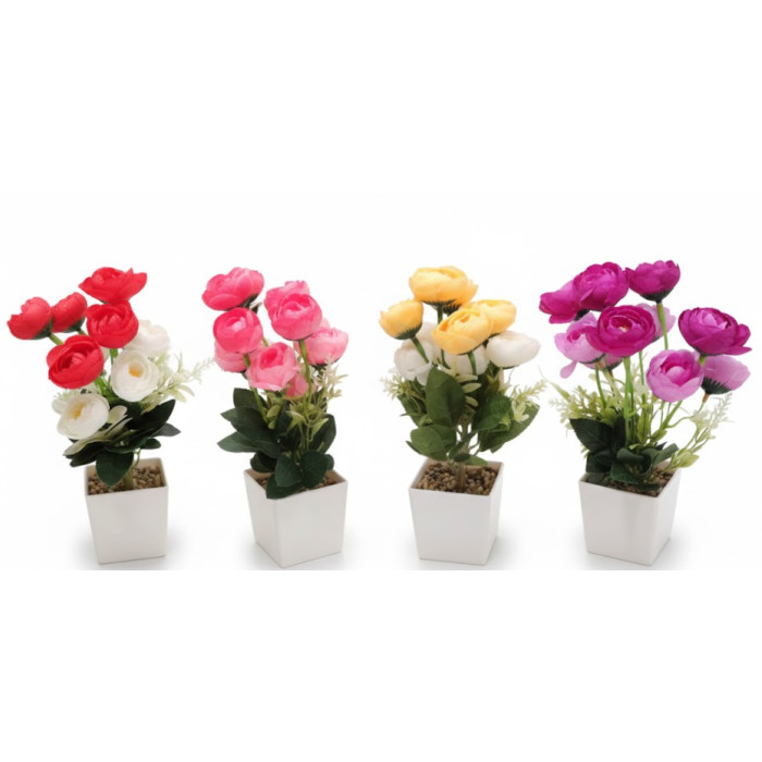 Ghiveci decorativ cu flori artificiale bujori 25cm..