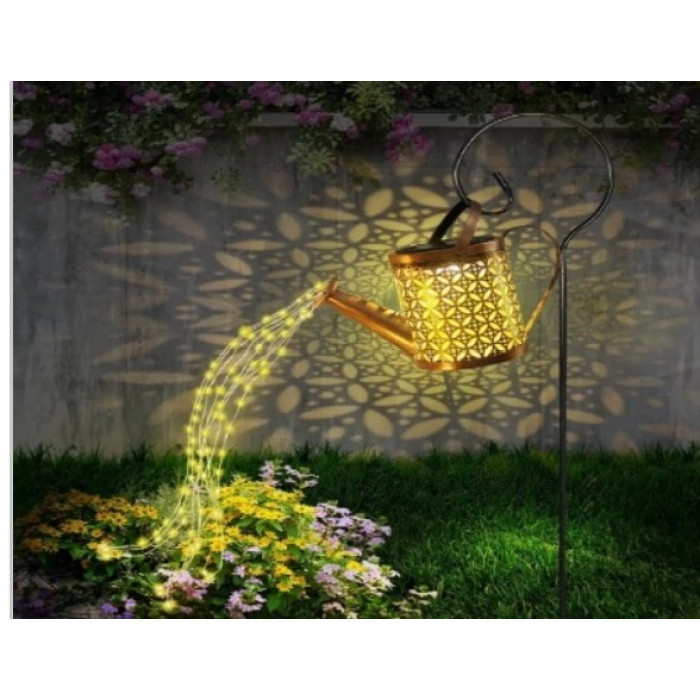 • Efect Vizual Spectaculos: Din duza stropitoarei, șiruri de LED-uri calde și subtile simulează o cascadă luminoasă de apă sau o ploaie de stele care se revarsă peste flori sau gazon.