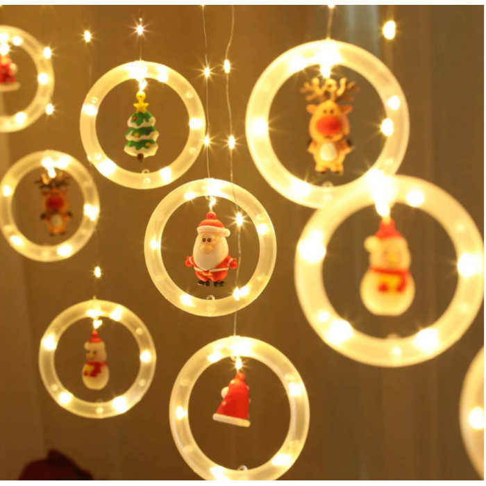 Instalatie perdea luminoasa Craciun 110 leduri, 3.5m cu 10 globulete care contin figurine cu Mos Craciun si sunt iluminate de o lumina calda, placuta,..