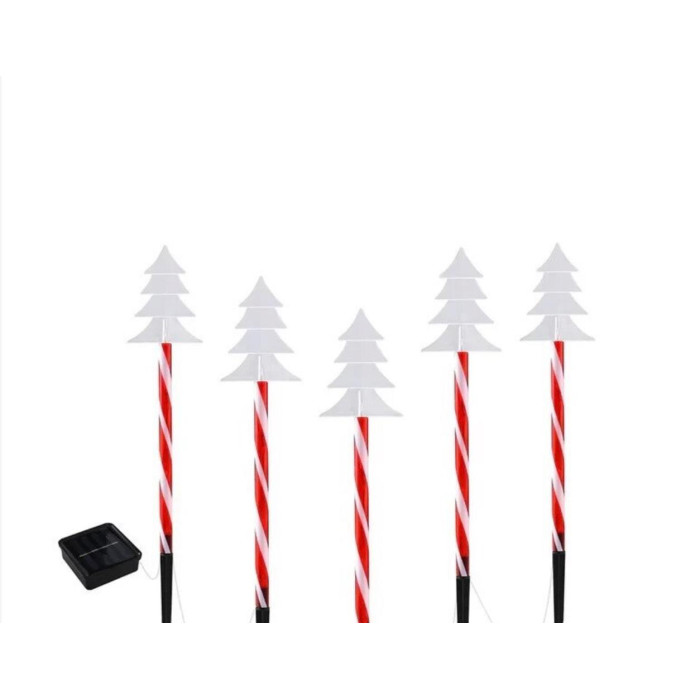 Instalatie cu lumina alb cald in forma de bradut 2m  cu incarcare solara  cu 5 corpuri rosii..