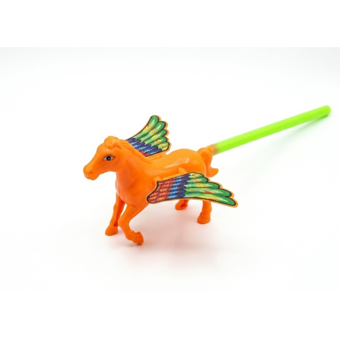 Mecanism Interactiv: În timp ce este împinsă, jucăria prinde viață! Căluțul își mișcă aripile colorate, simulând zborul, ceea ce îi captivează pe cei mici.