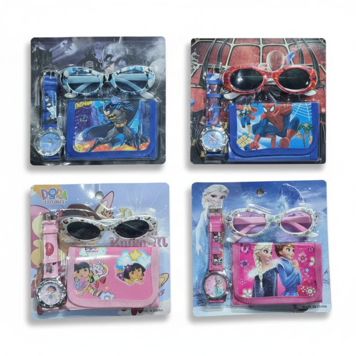 Set accesorii pentru copii: portofel, ceas si ochelari de soare. Toate accesoriile sunt asortate tematic, oferind un aspect unitar și îngrijit. Mater..