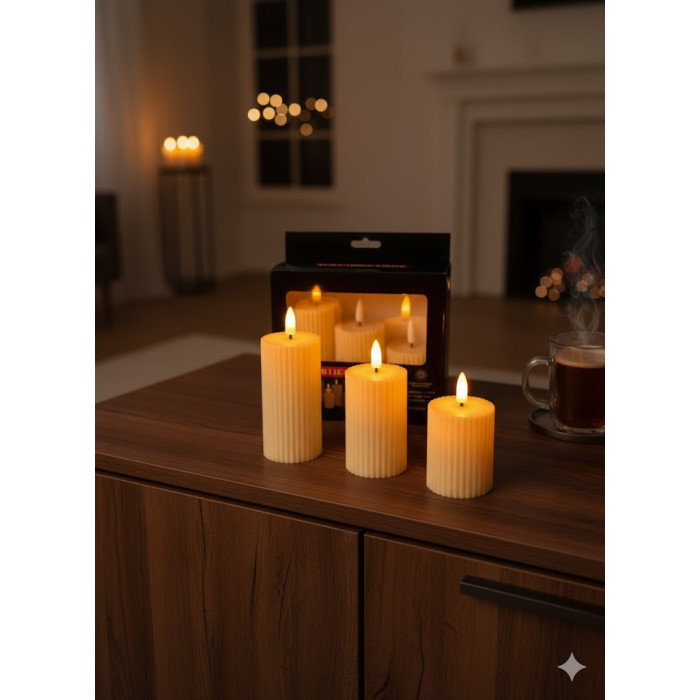 Set de 3 lumanari decorative cu led cu flacara realista. Acest set elegant de trei lumânări 15cm decorative LED combină frumusețea lumânărilor tradiționale cu siguranța și comoditatea tehnologiei moderne. Perfecte pentru a crea o atmosferă relaxantă și rafinată în orice încăpere, ele reprezintă soluția ideală de iluminat ambiental, fără riscul focului, fum sau ceară topită. Sunt un accesoriu versatil, potrivit pentru decorul de zi cu zi sau pentru ocazii speciale.