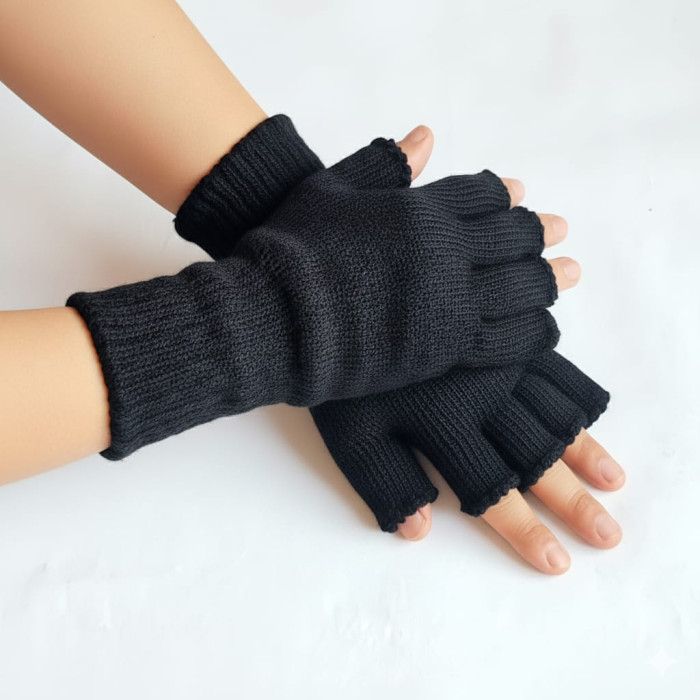 Manusi fara degete  tricotate negre unisex permite libertatea de miscare, asigurand confort si caldura in acelasi timp, Croiala fără degete (fingerless) îți permite să folosești cu ușurință smartphone-ul, tastatura sau să manevrezi obiecte mici fără a le scoate.