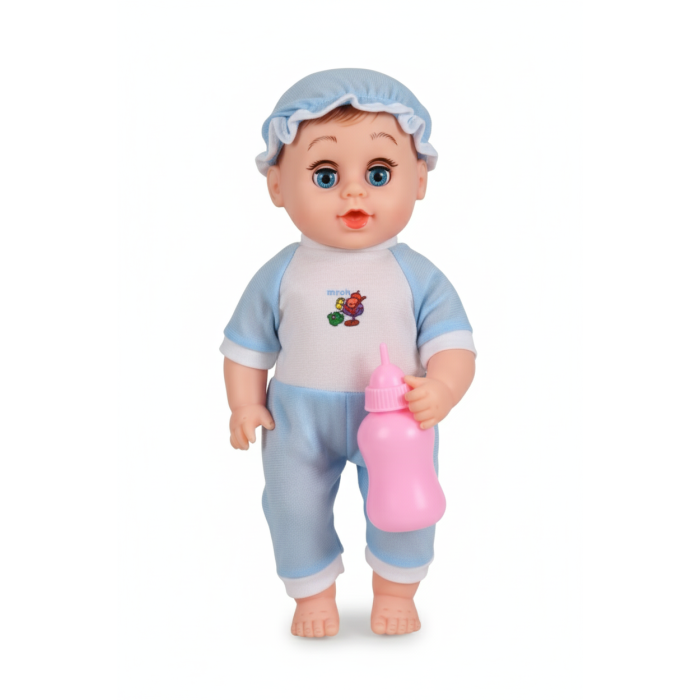Păpușă bebeluș 30cm care scoate sunete, perfectă pentru jocul de rol. Include suzeta si este ideală pentru dezvoltarea responsabilității. Încurajează empatia, responsabilitatea și jocul de rol de tip mamă-copil.