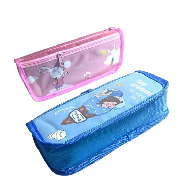 Penar scolar din panza cu 3 compartimente cu fermoar..