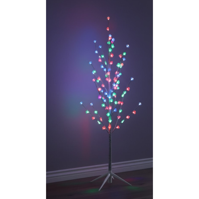 Pomisori decorativ cu leduri multicolore sustinut de un stativ alb, elegant cu 4 picioruse, dimensiunea 1.60m.Ramurile subțiri și flexibile, de culoare albă, sunt decorate cu LED-uri în formă de muguri sau flori care emit o lumină delicată și dispersată,