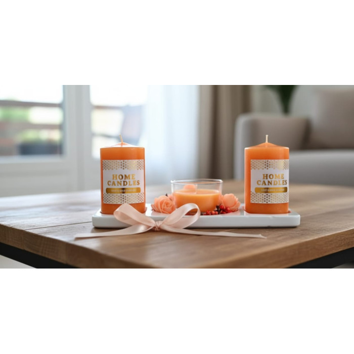 Adaugă o notă de rafinament și un plus de lumină ambientală oricărei încăperi cu acest set elegant de lumânări decorative "Home Candles". Ambalat cu grijă într-o cutie de tip cadou, cu o fundă delicată din satin, acest set este ideal pentru a fi oferit celor dragi sau pentru a-ți decora propriul cămin.